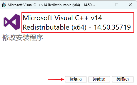 是动态链接库错问题了,使用VC_redist.x64.exe文件进行修复,重启电脑基本就好了